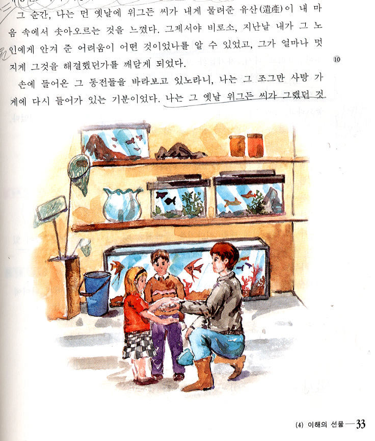 중학교 국어 1-1 교과서의 삽화수준.