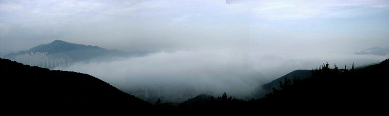 이기대와 광안리를 뒤 덮은 운무.