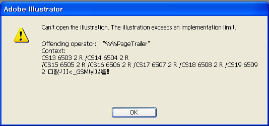 emoticon_096 에러로 보아서는 파일손상인듯 합니다. 일단 일러스트 좀 더 높은버전에서 열어보셔야 합니다. ========= ▷▶☎ 잘 해결이 안되신다면.. 준[A/S 판매]를 클릭후 <자기 소개>를 마우스로 눌러보세요.