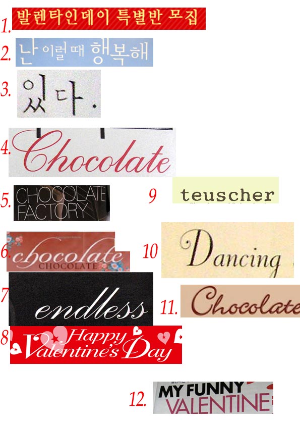 서체요 좀 많은데욤~ 무슨 서체인지 알고 계신분들 번호 쓰고 서체 명좀.