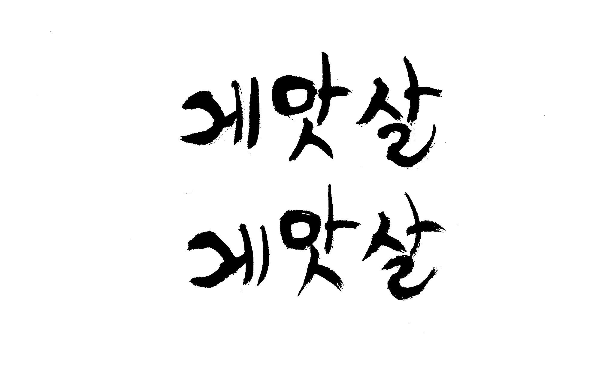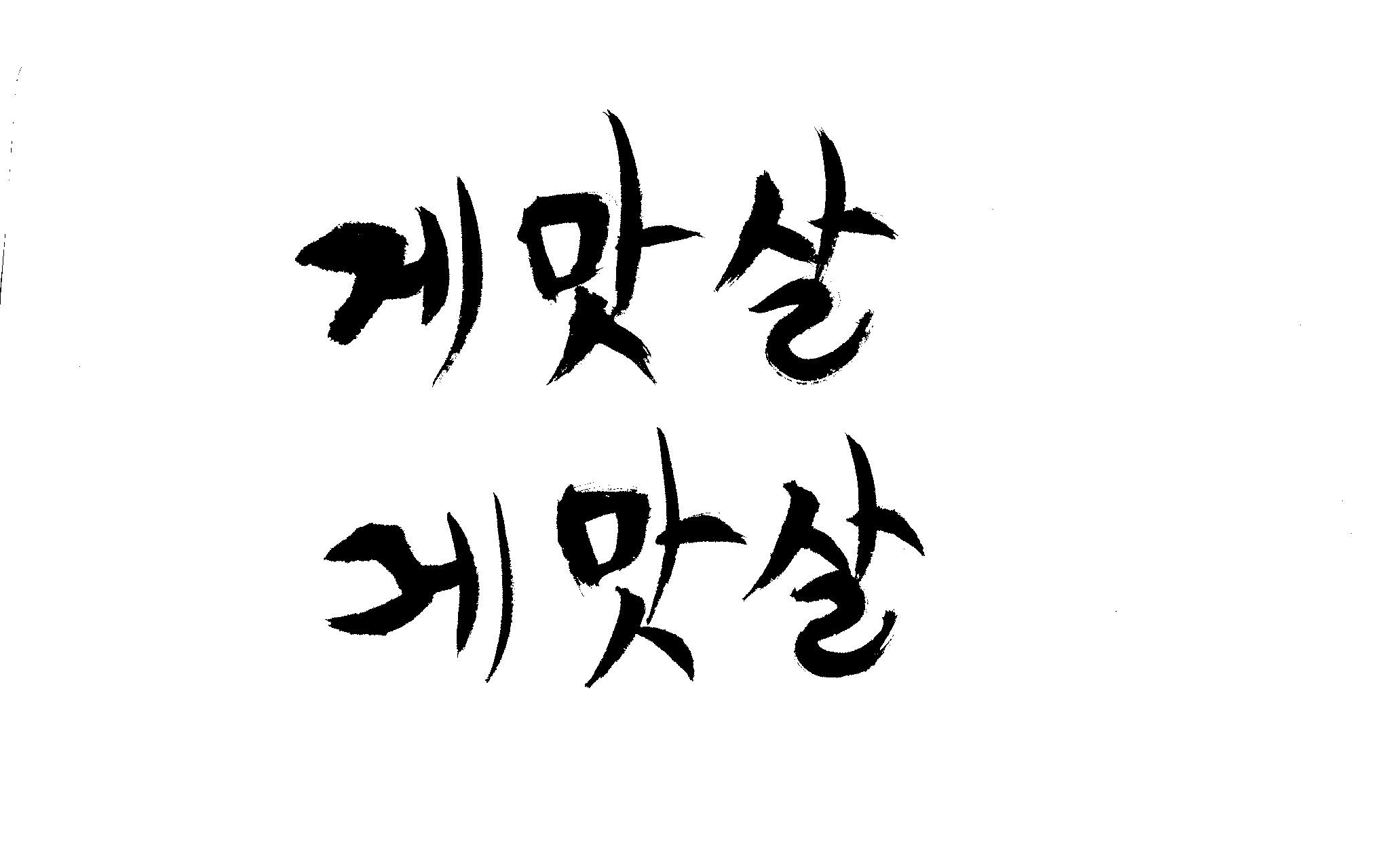 캘리 부탁드립니다. 김철호 일반 0 6627 2009.01.30 09:49 > > 제가 이리저리 써보기도 했으나 너무 이상해서 도움을 받고자 합니다. > 단어는 '게맛살' 입니다. 패키지디자인에 사용할 타이틀입니다. > 급한사항이니 부탁드립니다. 감사합니다. ^^ >